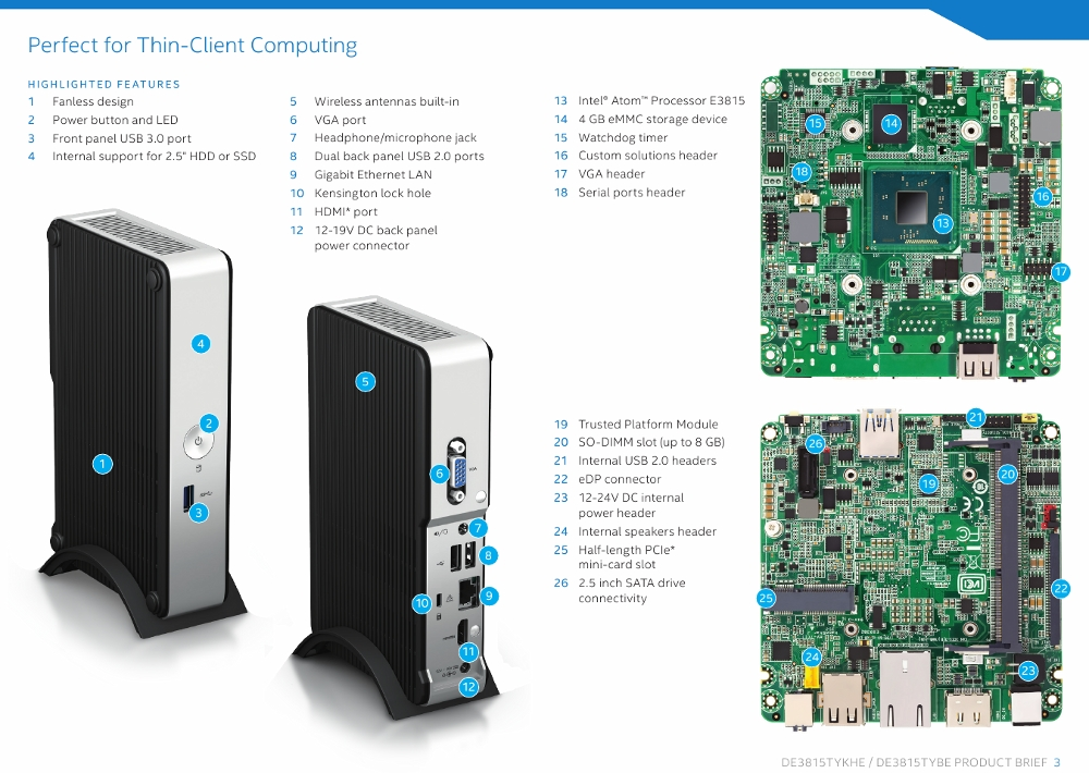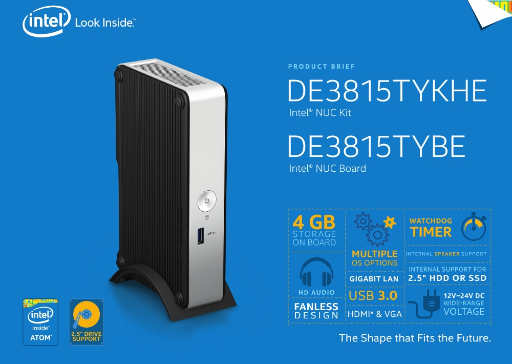 Comme l’évoquaient les rumeurs il y a deux mois, Intel a officialisé un nouveau NUC, le DE3815TYKHE, qui se distingue du reste de la famille par un nouveau design et un fonctionnement entièrement passif, grâce à un processeur basse consommation pouvant se passer de ventilation.