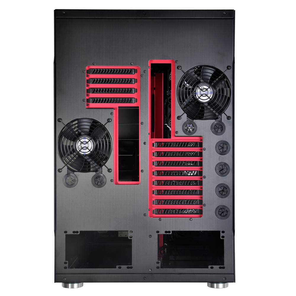Deux fois plus large qu’un boîtier classique, le PC-D666 dispose d’une cloison centrale qui peut accueillir deux cartes mères, jusqu’au E-ATX d’un côté et jusqu’au Micro-ATX de l’autre.